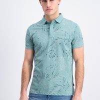 Polo Brenzi pique allover print leafs Lagoon Green (Gabbiano)