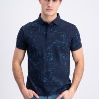 Polo Brenzi pique allover print leafs Navy (Gabbiano)