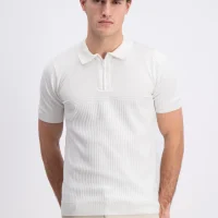 Aerik – Geometrische knit polo Ecru (Gabbiano)