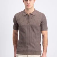 Aerik – Geometrische knit polo Wood Brown (Gabbiano)