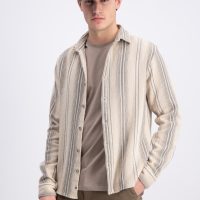 Jens Shirt longsleeve slub vertical stripes (Gabbiano) Roasted Pecan