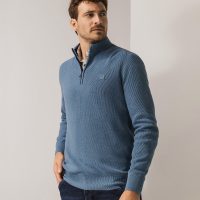 Trui met halve rits en structuurpatroon Donkerblauw (State of Art Winterdeal)