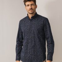 Overhemd met bladmotief Donkerblauw/Grijsblauw (State of Art Winterdeal)