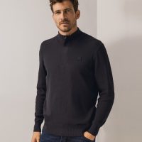 Trui met structuur en halve rits Antraciet (Bluefields)