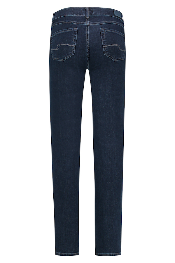Kleur & wassing: Dark Indigo — een diepe, klassieke blauwe denim die bij vrijwel elke outfit past.