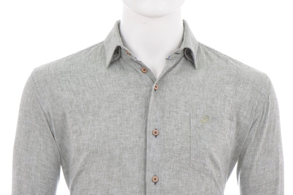EDEN VALLEY LONG SLEEVE BUTTON UNDER 55/45% LINEN/COTTON + Borstzak Groen