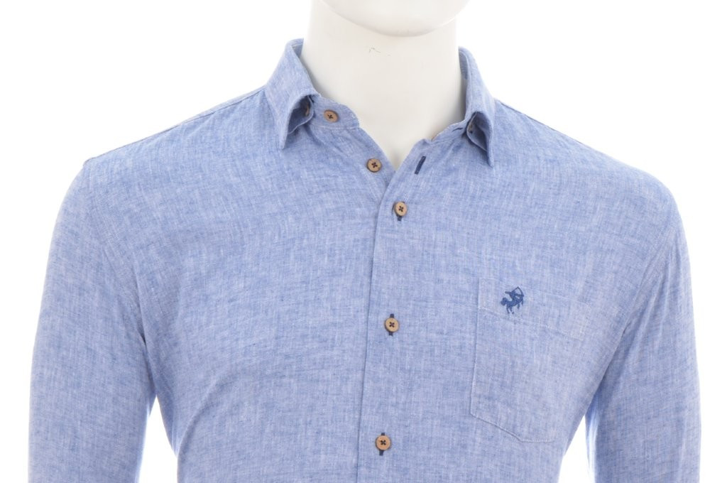 EDEN VALLEY LONG SLEEVE BUTTON UNDER 55/45% LINEN/COTTON + Borstzak Mid Blue aantal