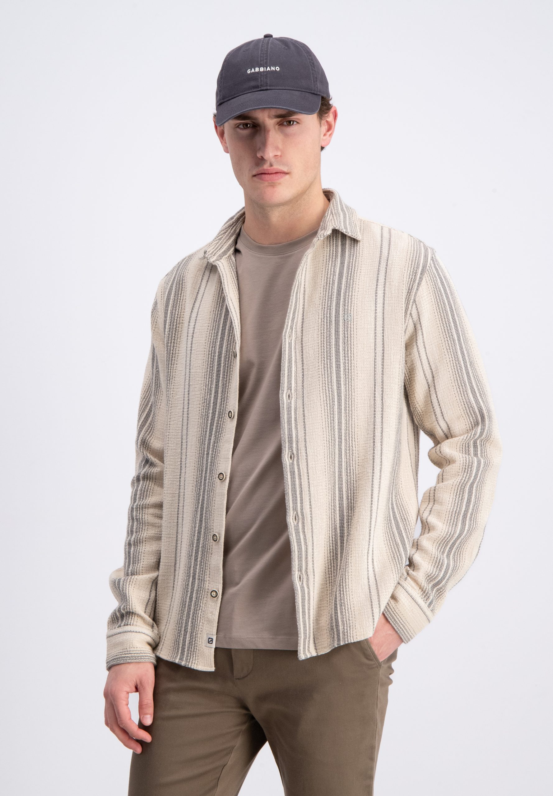 Jens Shirt longsleeve slub vertical stripes (Gabbiano) Roasted Pecan