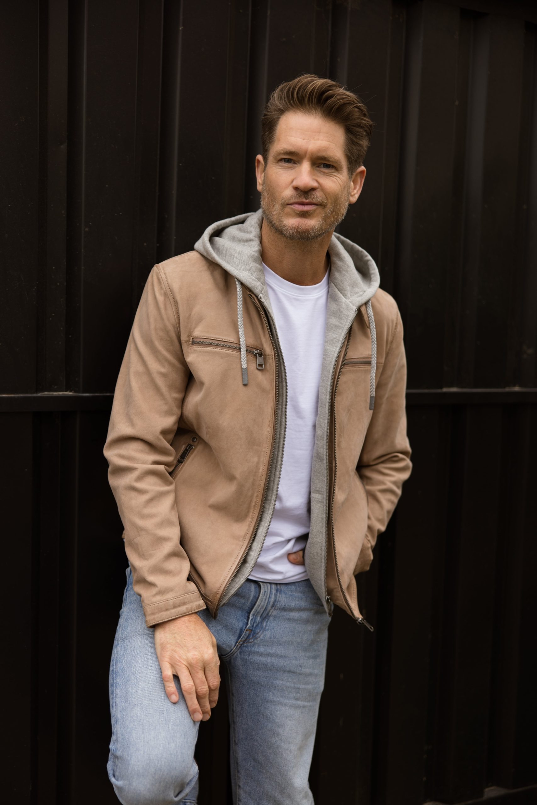 / Leren Bonber Jack Cream met uitritsbare Capuchon (Donders)