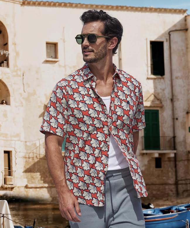 Shirt bladeren rood (Lerros) 100% katoen aantal