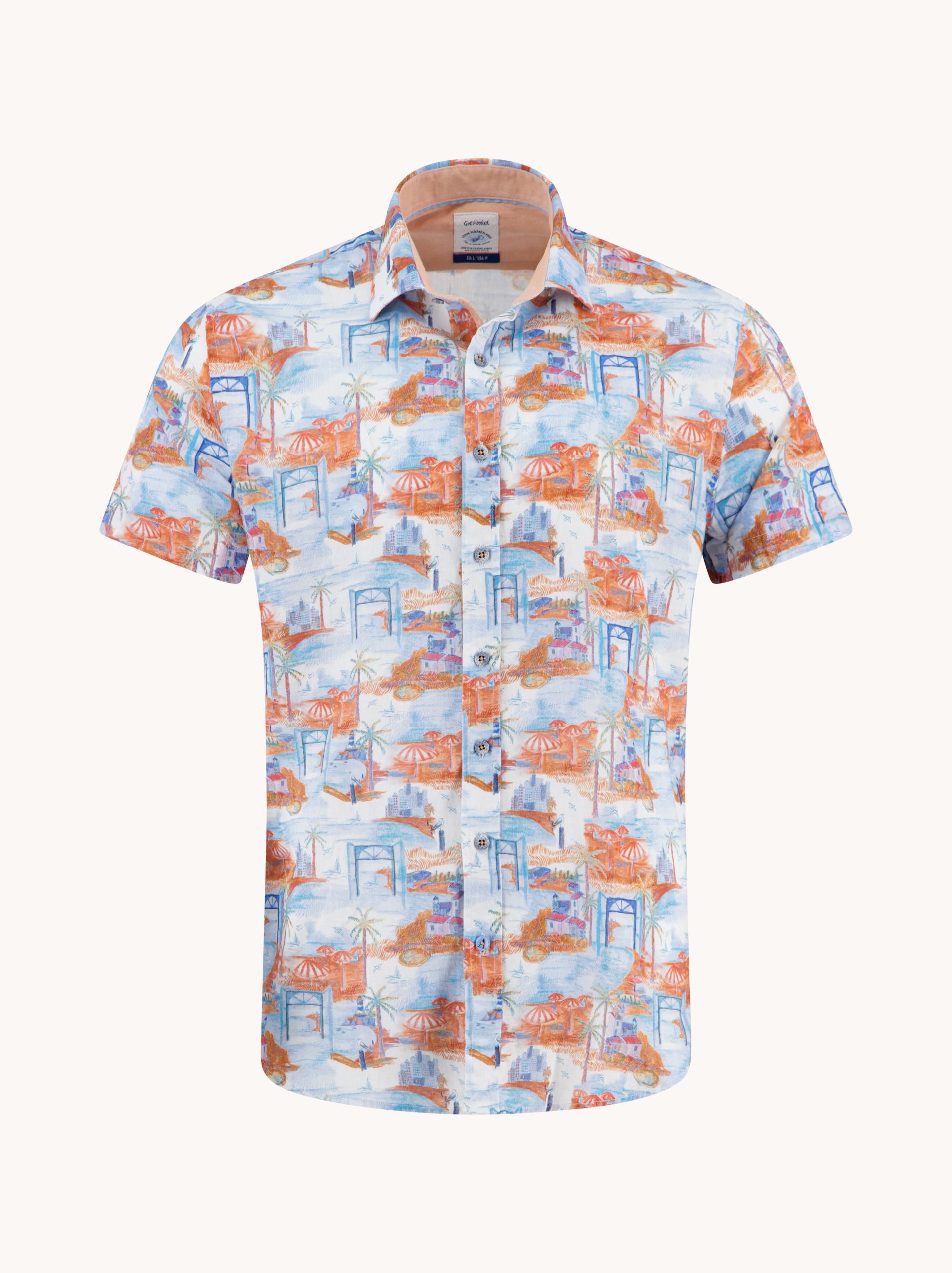 - Shirts met grafische prints die lijken op schilderijen of illustraties