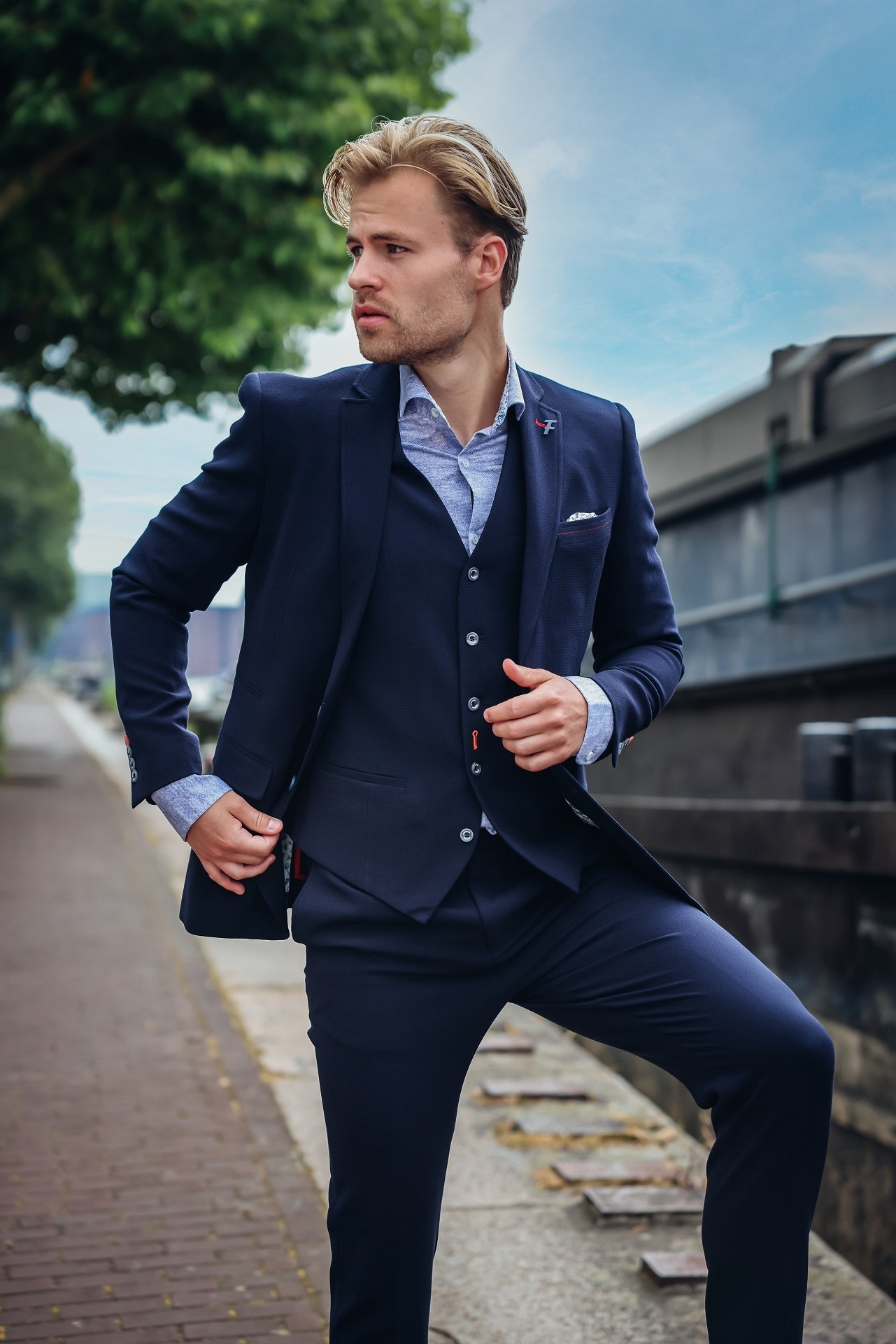 Waistcoat Stuctured Bubble Navy (Fred’s Threads) Te combineren met Broek en Blazer Structure Bubble Navy